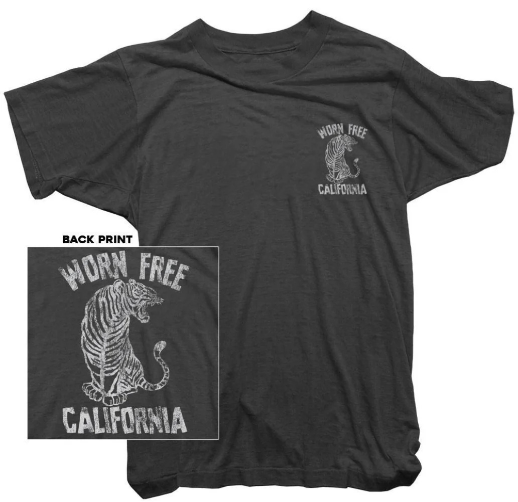 アメリカ発ブランドのWORN FREEによる、ヴィンテージ感漂うプリントTシャツです。フロントは胸元にワンポイントで“WORN FREE CALIFORNIA”ロゴとタイガーモチーフを配置。バックには同デザインを大きくプリントし、インパクトのある仕上がりになっています。かすれた風合いのプリントが、古着のような雰囲気を演出しています。素材はコットン100%で、柔らかく着心地の良い一枚。アメリカ製ならではのラフでナチュラルな質感も魅力です。商品ポイント・ブランド:WORN FREE・デザイン:オリジナル タイガープリント・仕様:フロント&バックプリント・生産国:アメリカ製・素材:コットン100%シンプルながら存在感のあるグラフィックで、カジュアルスタイルに取り入れやすい一着です.