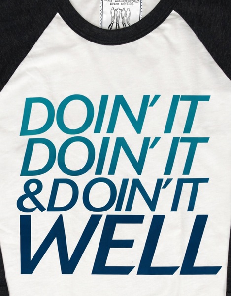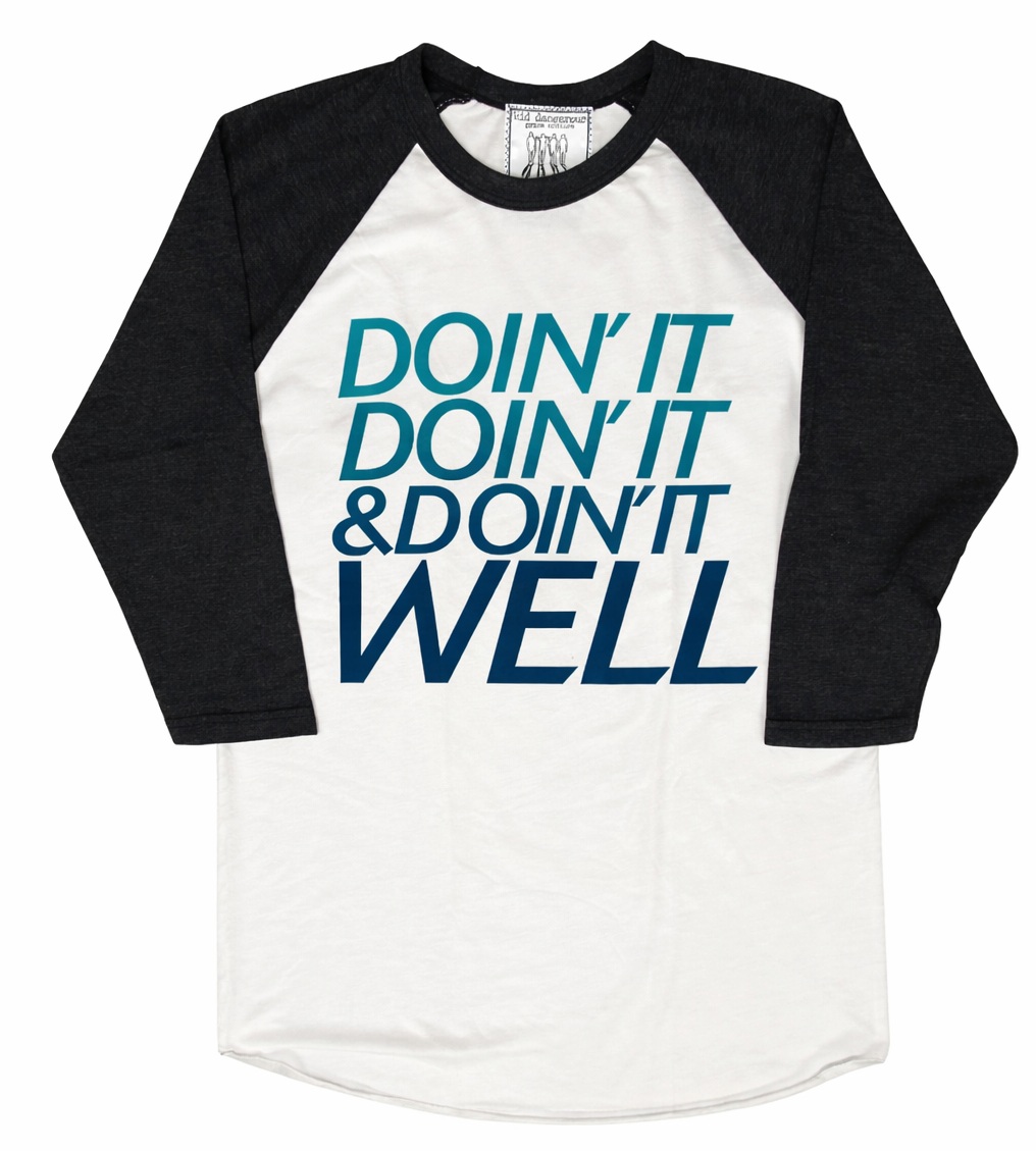 フロントには「DOIN’ IT DOIN’ IT & DOIN’ IT WELL」のメッセージプリントが大胆に配置され、ブルーグラデーションのカラーリングがスタイリッシュな印象を与えます。ボディはホワイト、袖はブラックの切り替えラグラン仕様で、カジュアルながらも程よいアクセントに。コットン50%・ポリエステル50%の混紡素材で、柔らかさと軽さ、耐久性を兼ね備えた着心地の良い一枚です。アメリカ製ならではの雰囲気と、ストリート感あるデザインが魅力。デニムやショーツと合わせたラフなスタイリングにおすすめです。