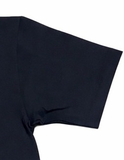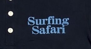 無骨さが残る前立てと、ネコ目ボタンで首もとにアクセント,二本針バインダー仕様 太めの襟バインダー幅(約2.5cm)ヘンリーネック2つ穴ネコ目ボタン使用。一本針天地縫い仕様 。オープンエンドの糸はふっくらとしており、ボリュームがある一方で、ドライでザックリとした風合いです。左胸にONE POINTプリント(SURFING SAFARI)が映える。
