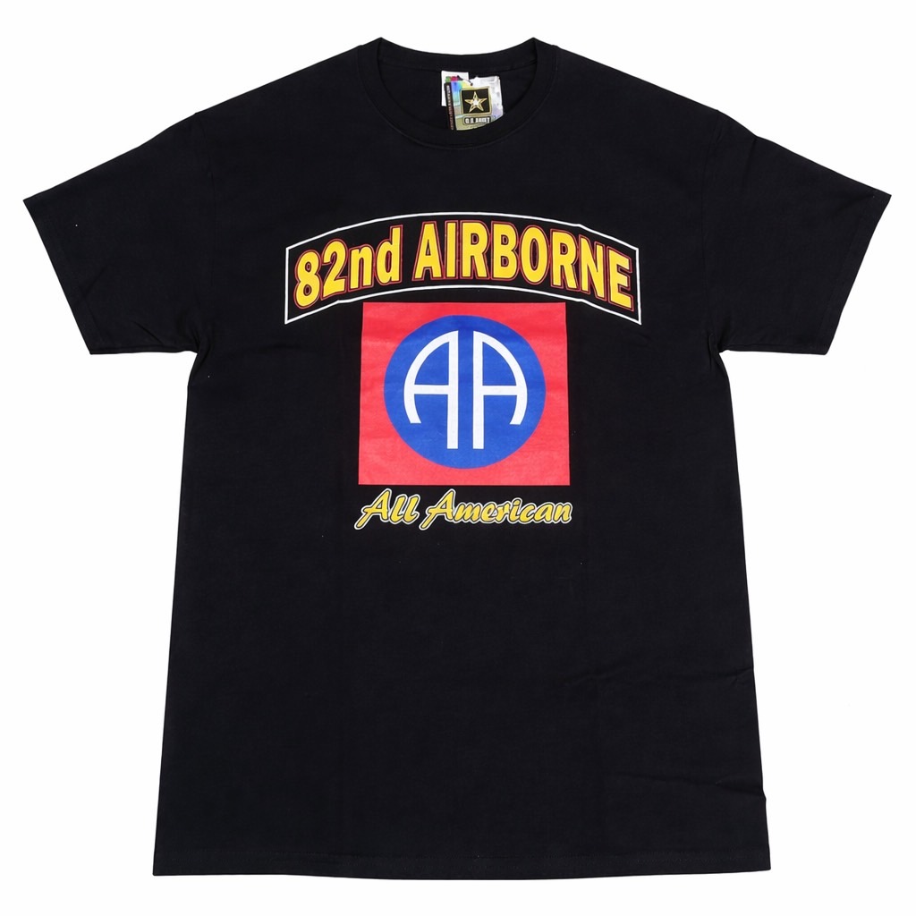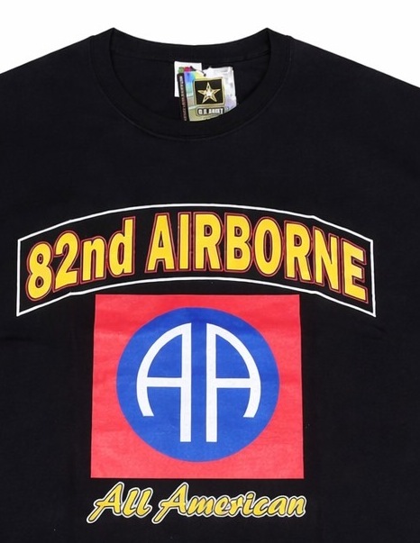82nd AIRBORNE プリントTシャツ(ブラック)|US ARMY ライセンス商品存在感抜群の「82nd AIRBORNE」デザインが目を引くミリタリーTシャツ。フロントには大胆なロゴと、象徴的な“AA(All American)”エンブレムを配置し、インパクトのある仕上がりになっています。ブラックボディに映えるイエロー×レッド×ブルーの配色が特徴で、コーディネートの主役になる一枚。デニムやカーゴパンツと合わせるだけで、簡単にミリタリー&ストリートスタイルが完成します。こちらはUS ARMY公式ライセンス商品のため、デザイン・品質ともに安心してご着用いただけます。